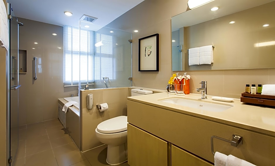 This spacious suite consists of 1 living room, 1 separate bedroom and 1 bathroom with a bath and free toiletries. Guests can make meals in the kitchen that is equipped with a stovetop, a refrigerator, kitchenware and a microwave. The air-conditioned suite provides a flat-screen TV with satellite channels, soundproof walls, a tea and coffee maker, a seating area as well as garden views. The unit offers 1 bed.